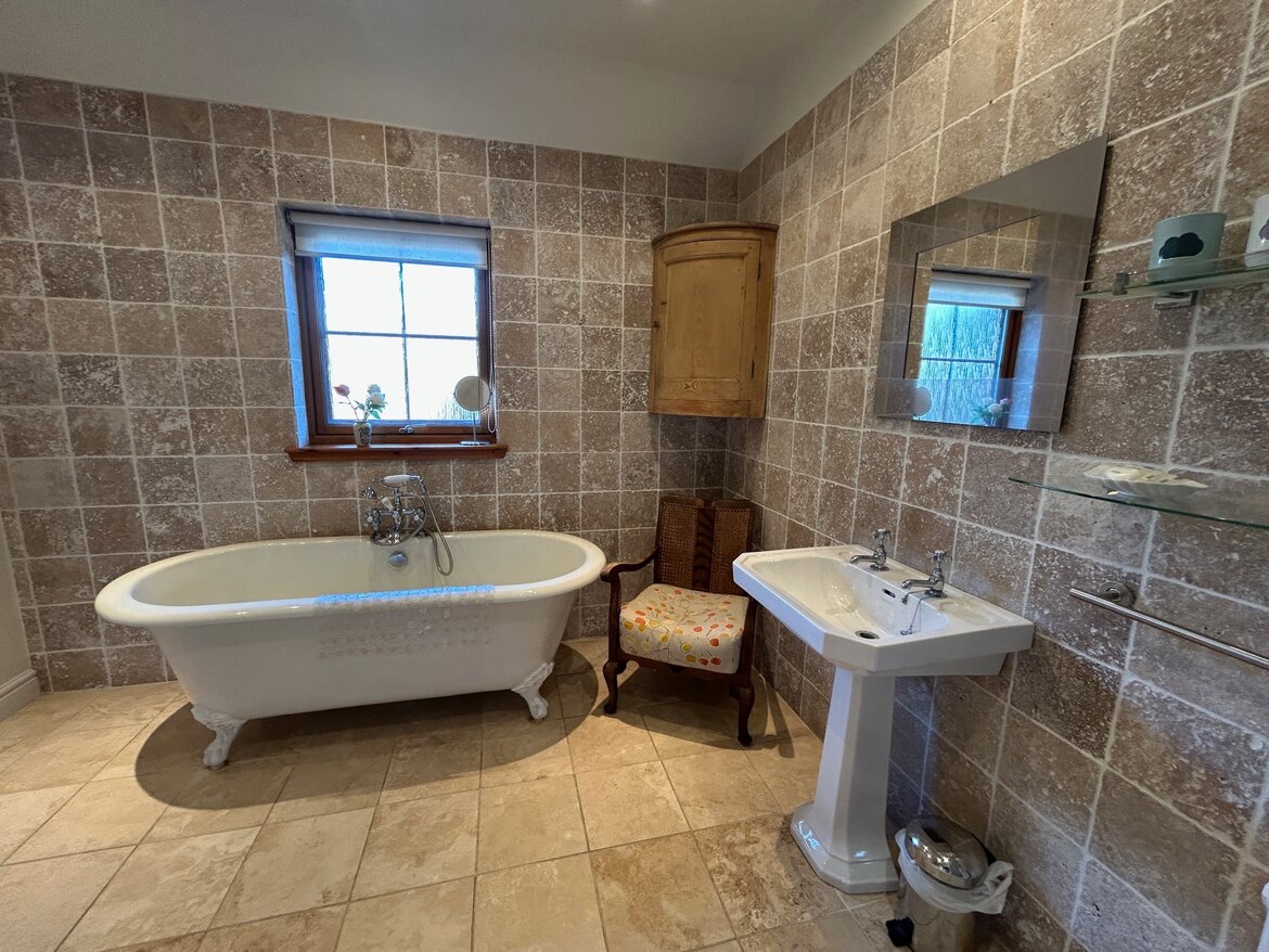 Being an old converted cottage it is not very suitable for a wheel chair as some doorways are narrow. However all rooms except the mezzanine are ground floor and access to the house is one step only