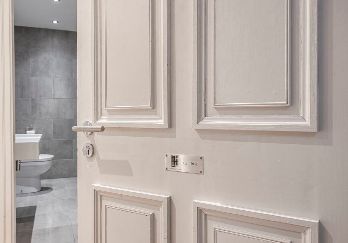 Situated on the ground floor, the apartment features a spacious open-plan living and kitchen area, offering an elegant and comfortable space ideal for both business and leisure travellers. High-quality finishes and carefully considered details throughout provide a premium stay with all the comforts of home.