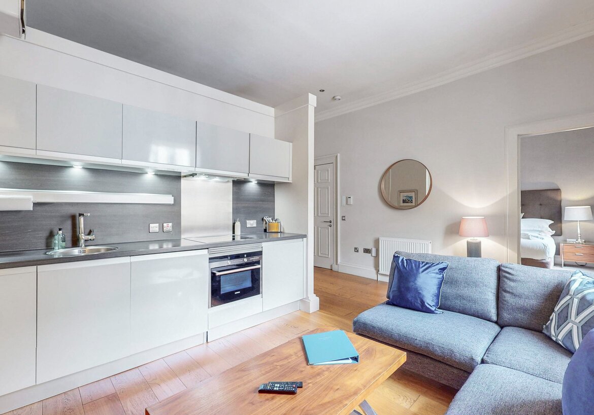 Set on the second floor, the apartment boasts a spacious open-plan living and kitchen area, offering a refined yet comfortable environment ideal for both business and leisure travellers. High-quality finishes and thoughtfully designed details throughout create a premium stay, complete with all the conveniences of home.